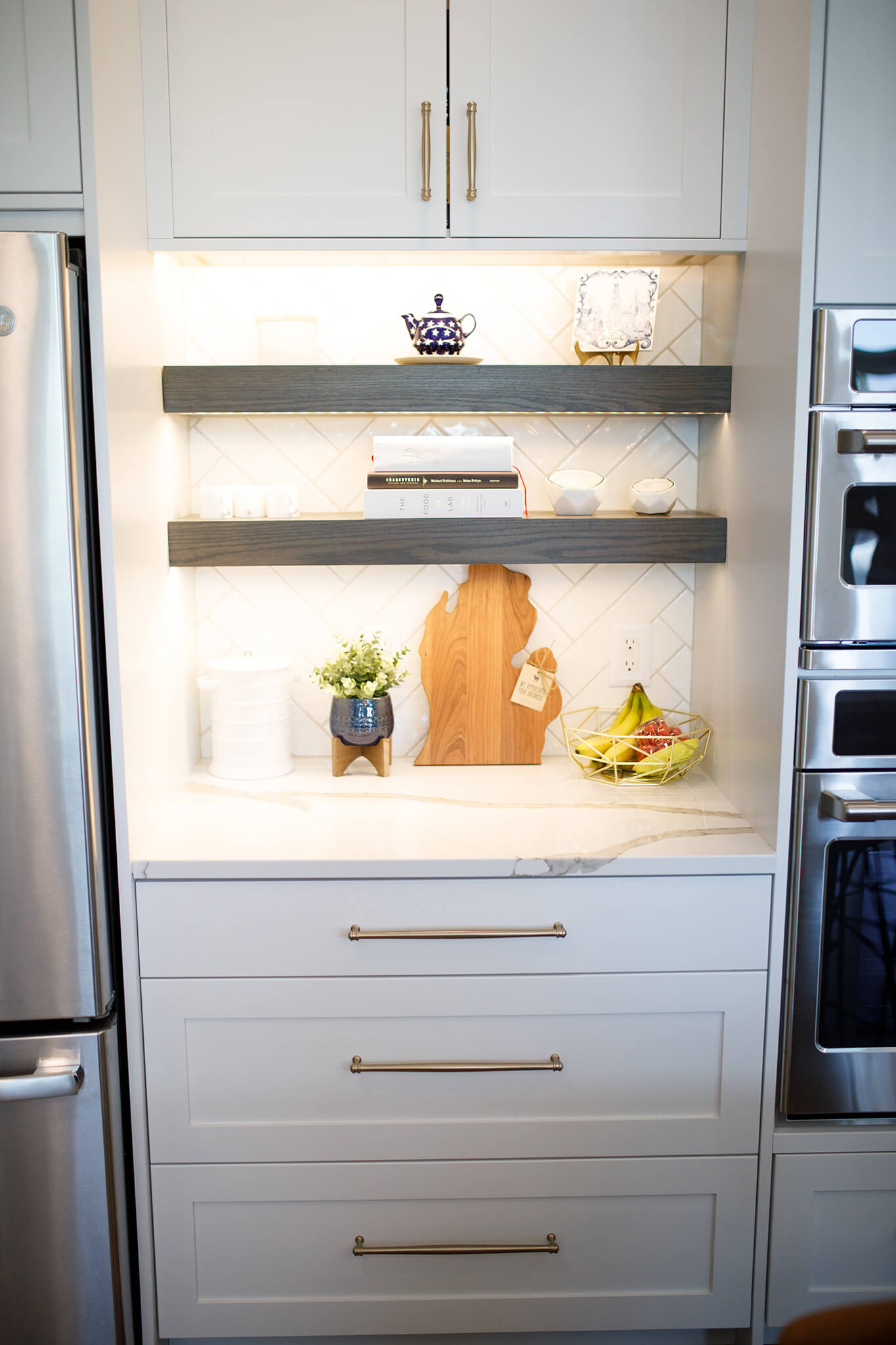 We worked with the homeowners to design and build the kitchen of their dreams. Our handcrafted cabinetry transformed this space into an elegant and functional room with custom touches throughout.